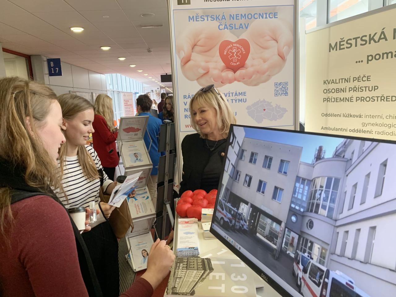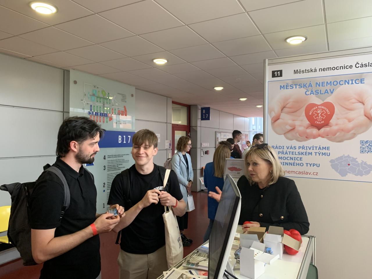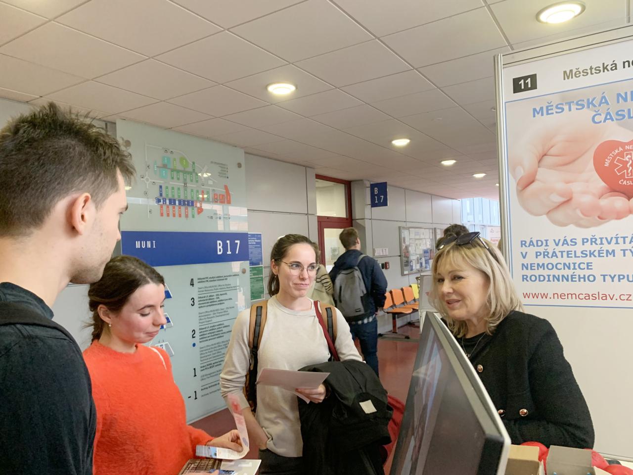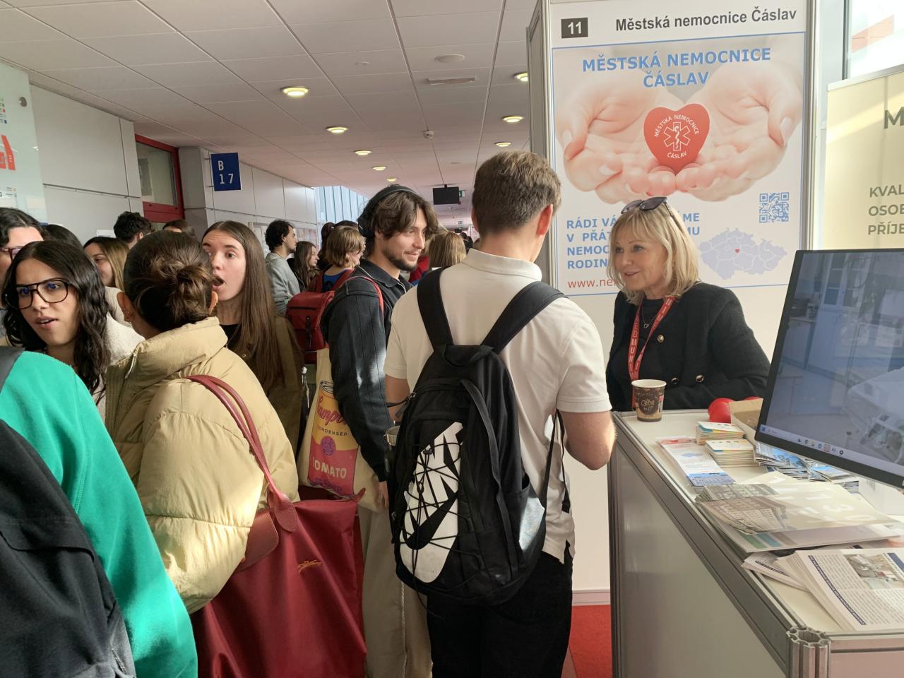Ve středu 15. října proběhl v Praze Kariérní veletrh 1. LF UK a v Brně veletrh JOBMED, oba se zaměřením na uplatnění budoucích absolventů medicíny. Naše nemocnice se rozhodně neztratila ani na jednom z nich a měli jsme co prezentovat - od praxí až po nabídku zaměstnání. Studenty nad očekávání zaujala právě velikost čáslavské nemocnice, která dává oproti velkým kolosům možnost docílit lepší atmosféry a hlavně skutečně osobního přístupu k pacientům. Oceňovali také kvalitu jejího vybavení.