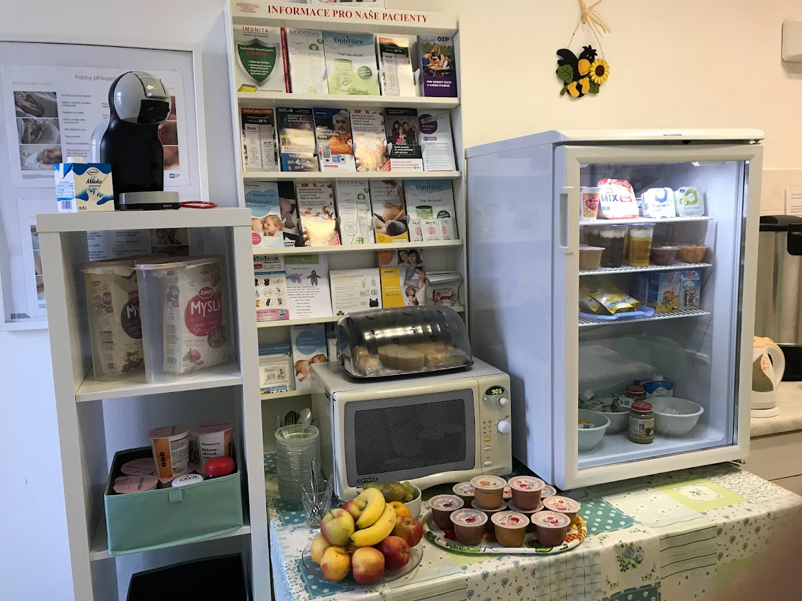 Nově je pro ně v kuchyňce na oddělení porodnice připravený občerstvovací pult a lednice, kde si mohou maminky kdykoli během dne i noci dopřát navíc cereálie, müsli, ovoce, mléko a mléčné výrobky, jako kefír, jogurty a jogurtová mléka, máslo, sýry, ale třeba také přesnídávku, med nebo marmeládu.