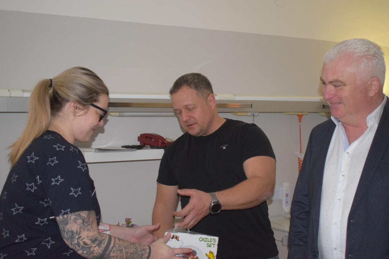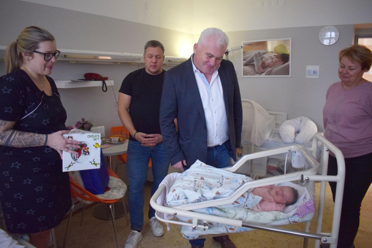 Na druhý den, tedy ve čtvrtek 2. ledna přišli pogratulovat maminkám a dětem popřát vše krásné do života spolu s ředitelem nemocnice MUDr. Ctiborem Provazníkem také starosta města Ing. Jaromír Strnad a místostarostka Mgr. Renata Vaculíková. Ti také zároveň maminkám pro jejich děti předali drobné pozornosti od města.