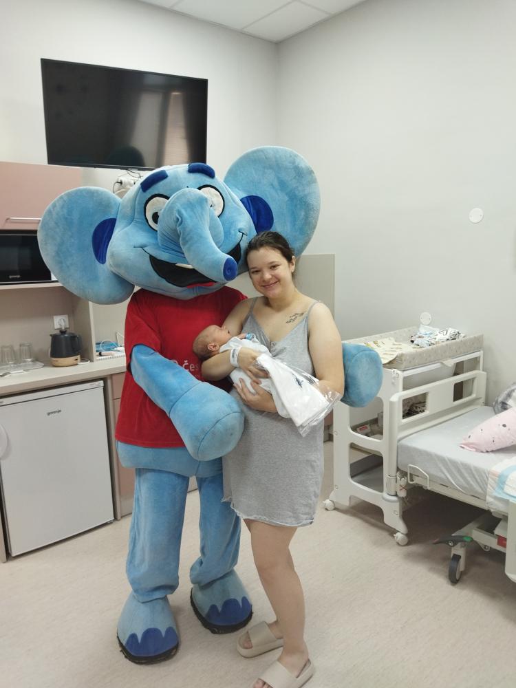 Dne 27. 5. 2024 přišli rozveselit a potěšit naše miminka,malé pacienty a jejich rodiče na dětské a novorozenecké oddělení zástupci Okresního sdružení hasičů Praha-Západ ve spolupráci se zástupci Českých drah a jejich maskotem sloníkem Elfíkem.