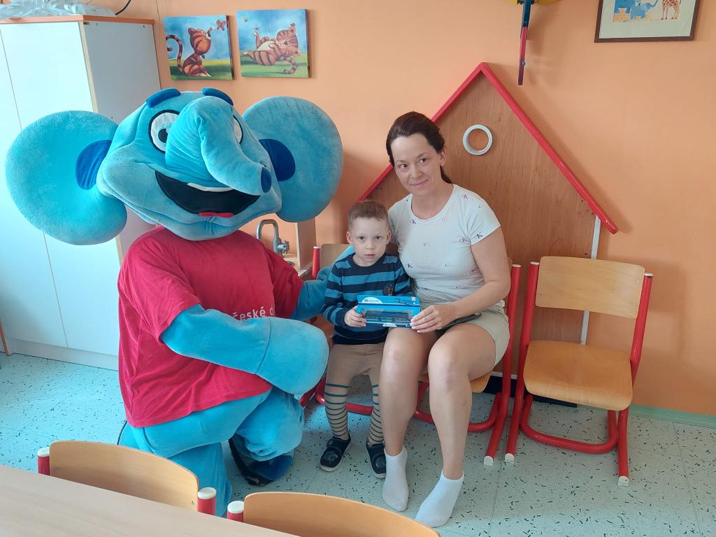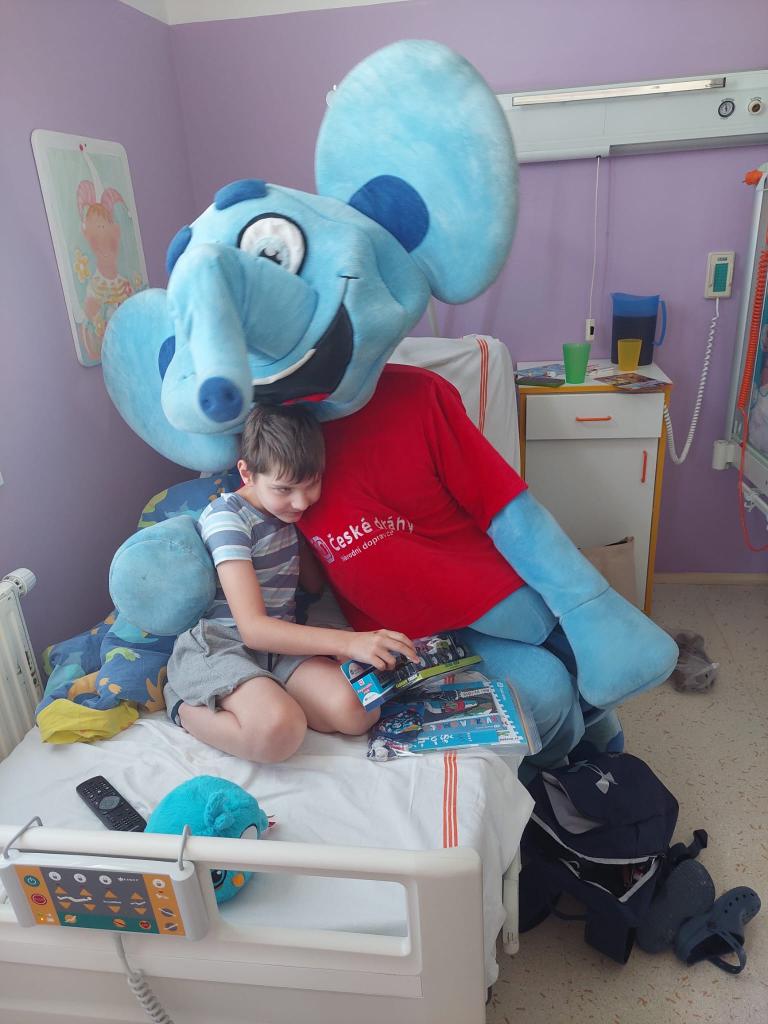 Sloník Elfík přináší dětem štěstí s přáním brzkého uzdravení. S dětmi se pobavili a obdarovali je krásnými dárky.