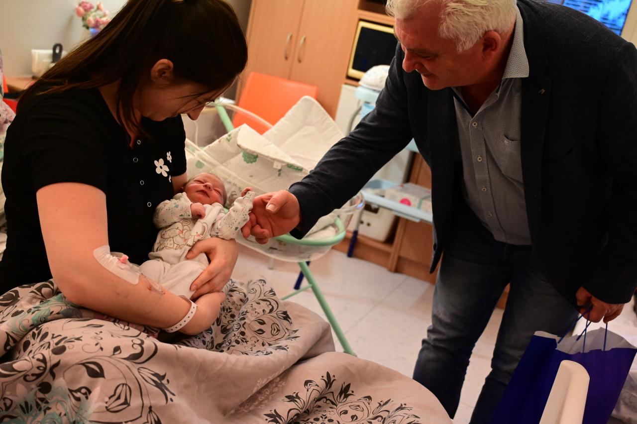 Prvnímu miminku i jeho mamince přišli, jak je již zvykem, pogratulovat také zástupci vedení města, starosta Ing. Jaromír Strnad a místostarostka Mgr. Renata Vaculíková. Ti s sebou zároveň přinesli pozornosti jak praktické, tak i na památku.