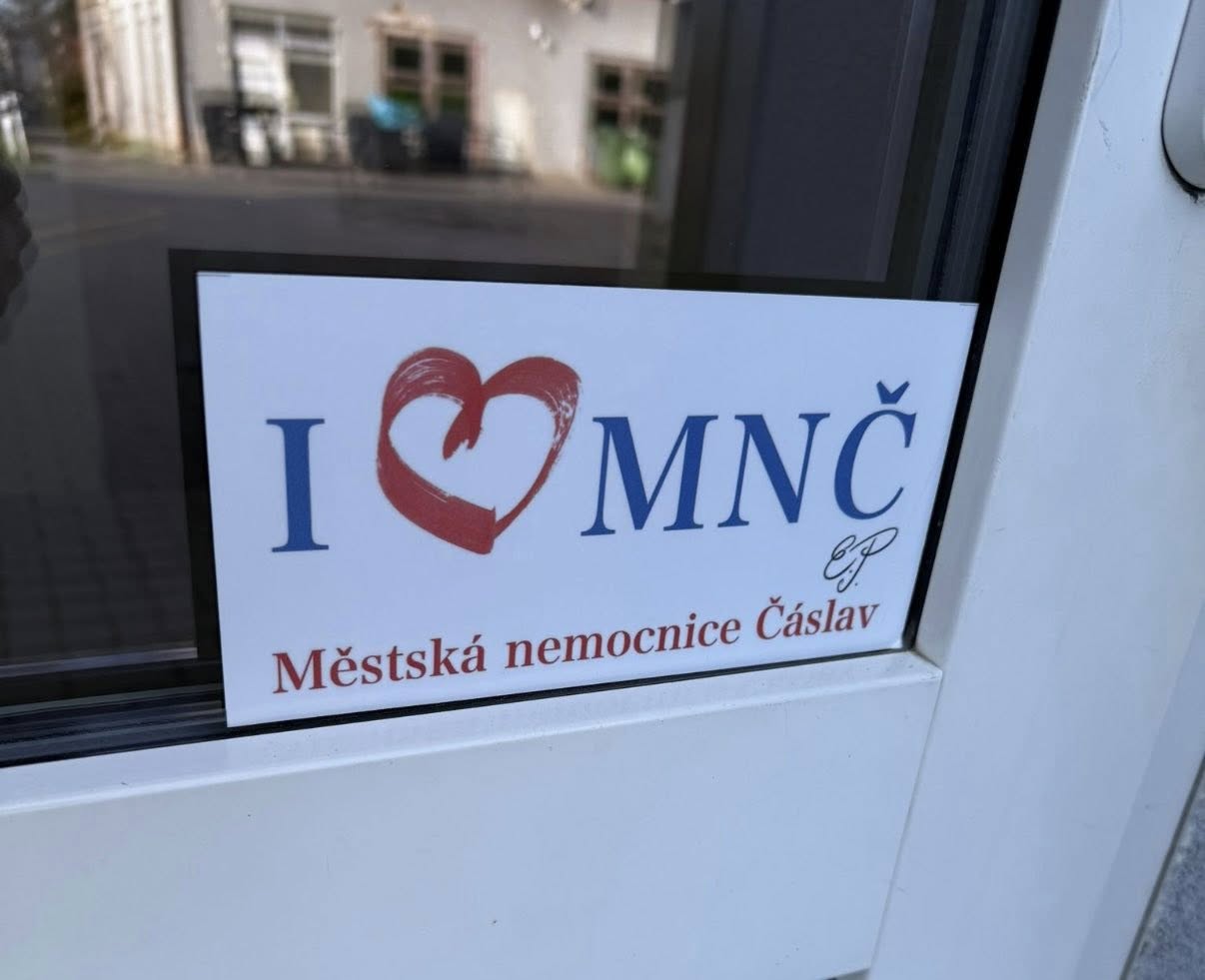Po nemocnici už začínají přibývat nové samolepky, které vznikly z nápadu pana doktora Ervína Petrikoviče.